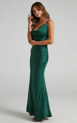 Master the art of elegance with the Lunaria Dress! This timeless maxi is cut to a bias silhouette and skims the body ever-so smoothly. Featuring a cowl neckline, slim straps and a flattering mermaid-like silhouette, this pretty piece is a *must* for that next special event or occasion coming up. Take it to formal with sleek high heels, fine jewellery and a clutch!