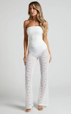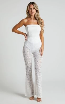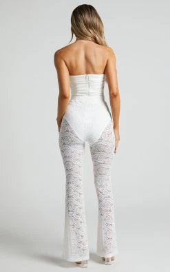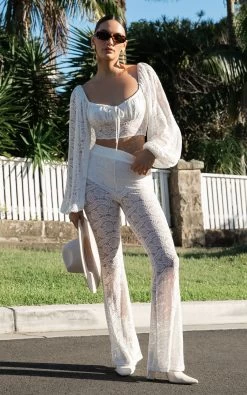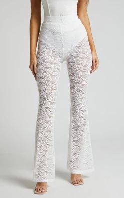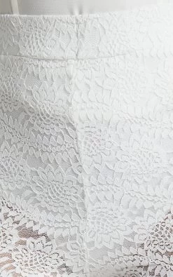 Calling all fashionistas! Elevate your party or festival look with our Mehca Lace Flared Pant in white. These full length straight leg pants are a must-have for any stylish wardrobe, featuring a built-in brief and delicate lace detailing that adds a touch of femininity to the classic pant style.