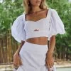 Get into the spring-summer mood with the Melodie Two Piece Set! This chic and timeless ensemble features a short sleeve crop top that ties at the front and a flattering midi skirt with a thigh high split. Perfect to wear to parties, boozy brunches and more, you can dress it up with heeled sandals or down with sneakers, and you’re good to go!