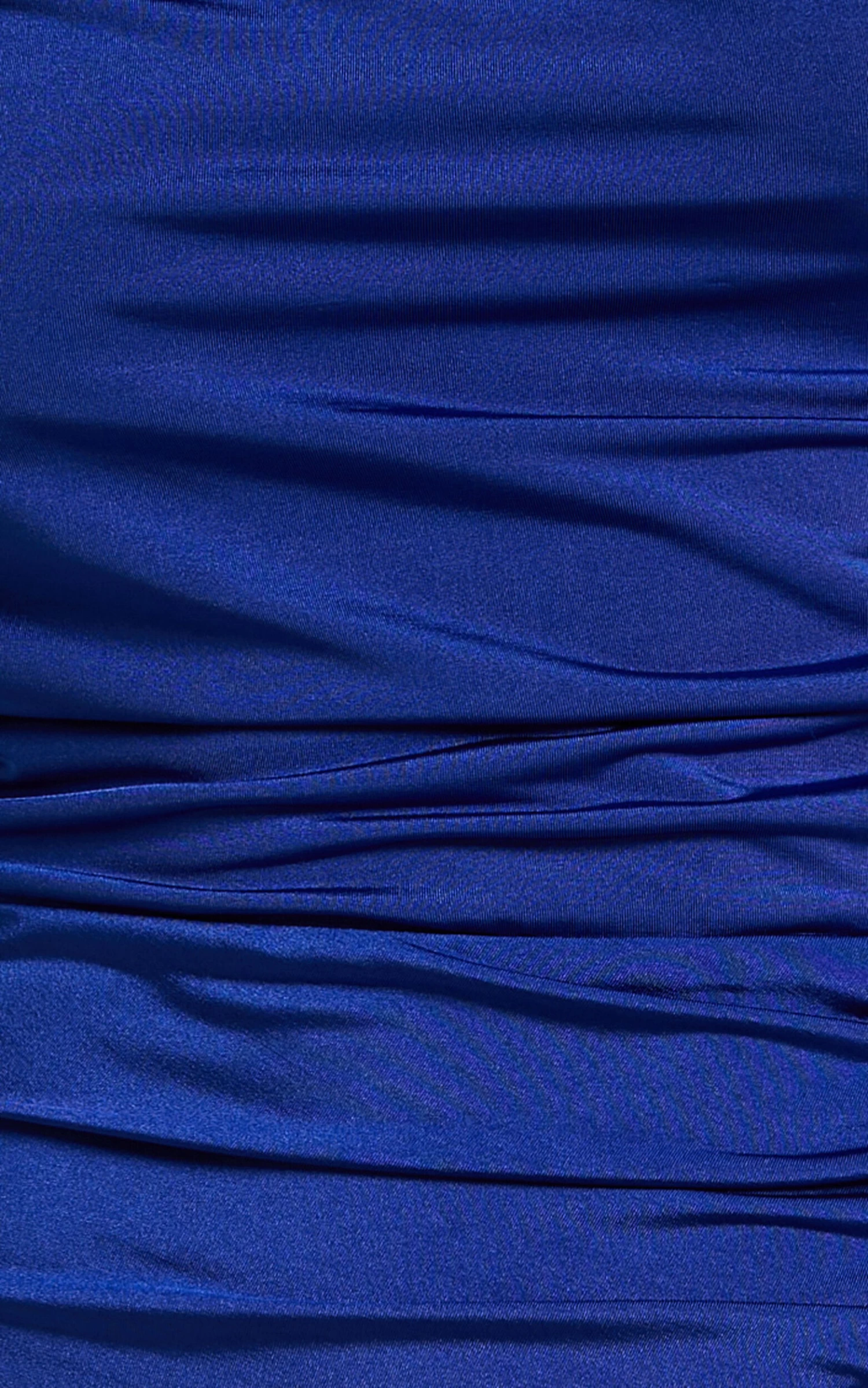 Get ready to turn heads in our Mhira One Shoulder Side Split Maxi Dress in Blue!