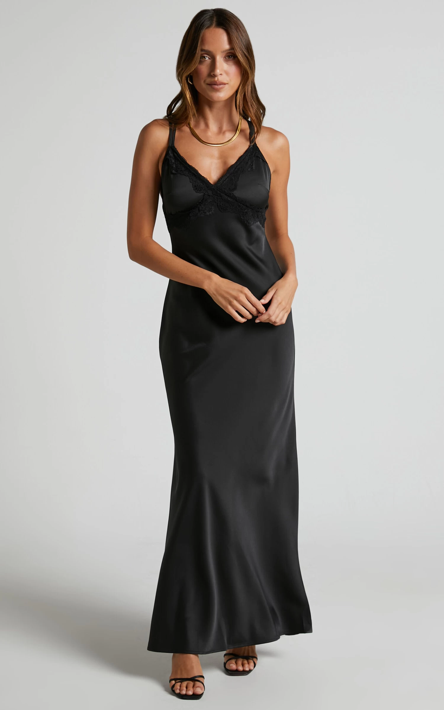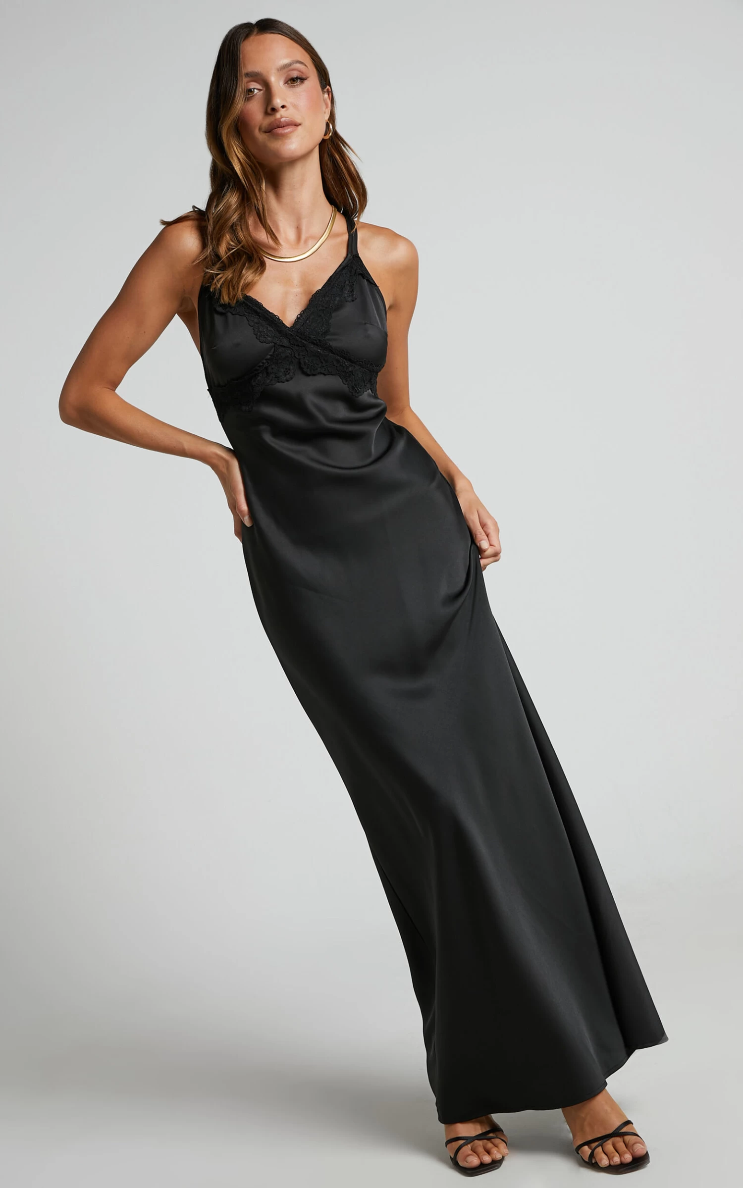 The Nievie Lace Trim Bias Cut Midi Dress in Black is the perfect addition to your autumn wardrobe. This dress features stunning lace trim detailing and a flattering v-neckline, making it suitable for any formal or cocktail occasion. The bias cut of this slip dress creates a beautiful silhouette, accentuating your curves in all the right places.