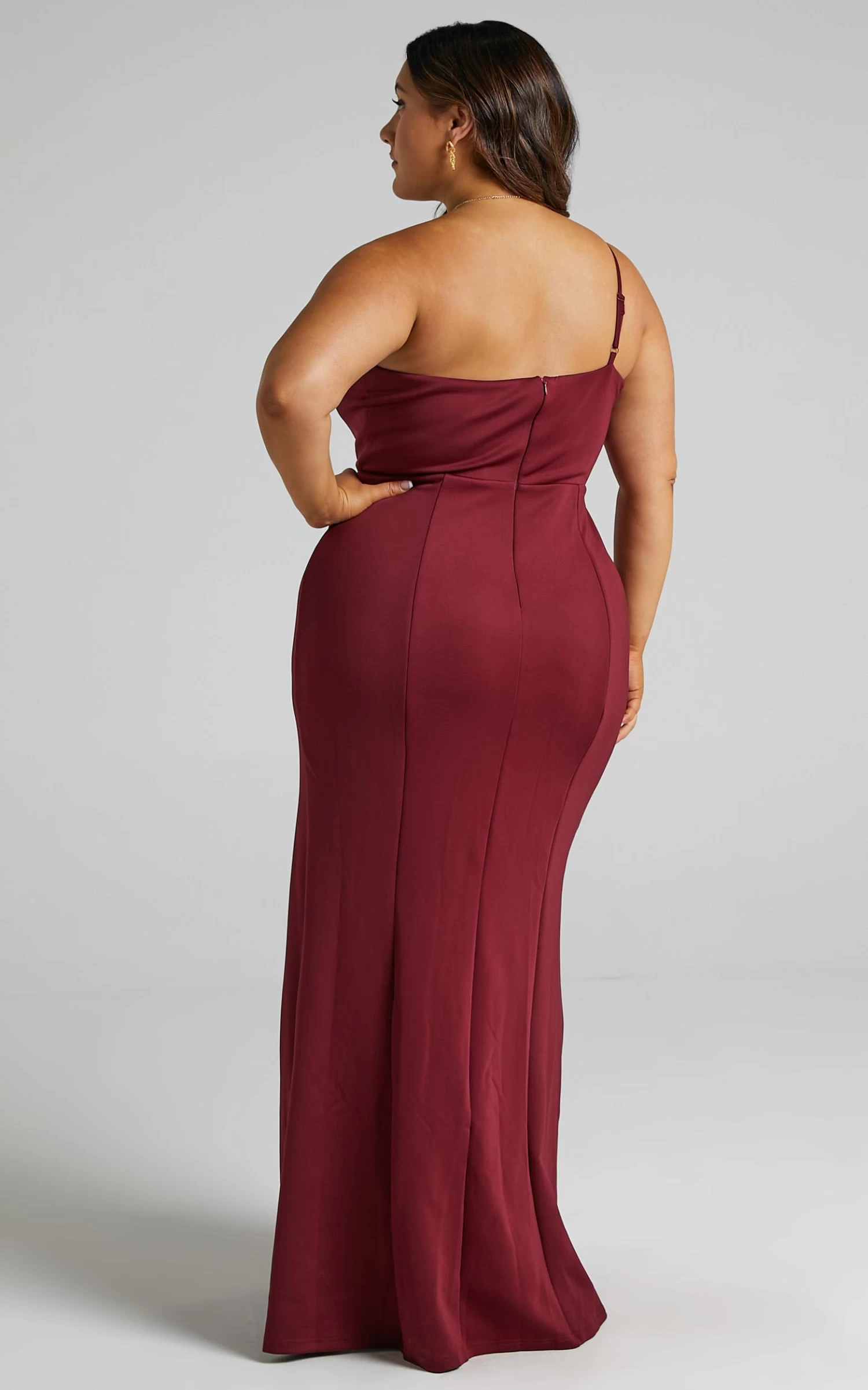 Make jaws drop in our No One’s Fault Maxi Dress! This stunning number has a perfectly balanced A-line silhouette with a curved one-shoulder bodice and floor-length skirt with a thigh high split. It’s such a sleek and chic staple to have in your wardrobe for those special events and occasions coming up. Add strappy heels and statement jewellery to bring this formal look together!