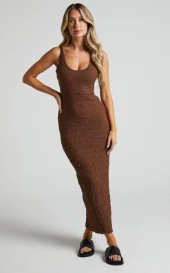 Indulge your sweet tooth with the Novida Midi Dress, a chocolate-hued bodycon dress that serves up major style points. Crafted in cozy jersey fabric, this dress is perfect for any casual occasion, from weekend brunches to afternoon strolls in the park.
