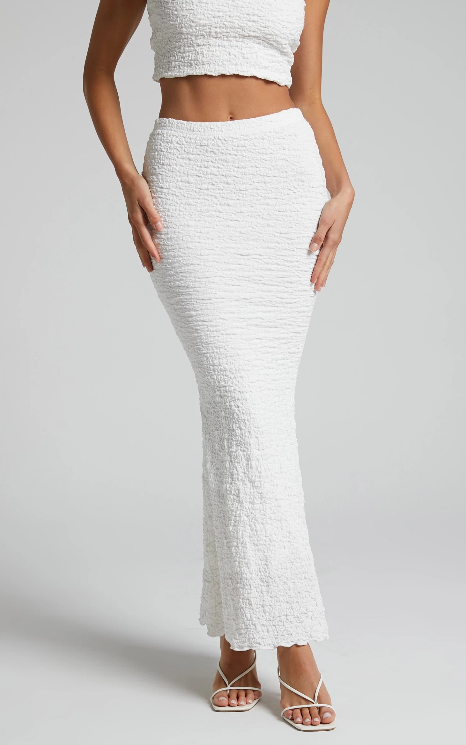 The Novida Midi Skirt is your new starting point for so many it-girl looks this season. With a slip-style fit and textured finish, it will have you looking cool right through the warmer months.