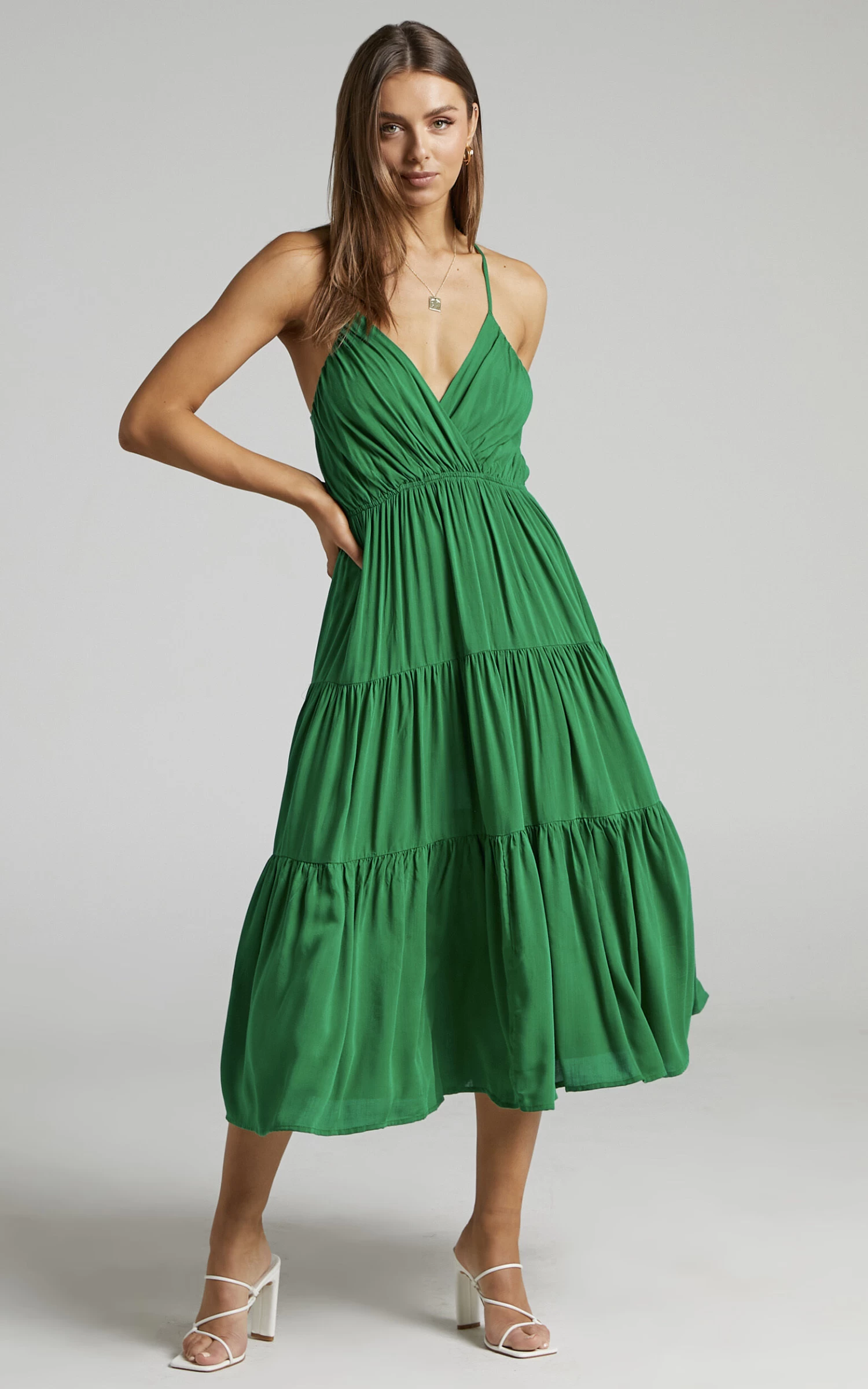 Feel flirty and fabulous in our Phaloma Dress! This gorgeous midi features a fixed wrap bodice with a V-neckline, elasticated waist and two tiers with a gathering effect. It’s a light and flowy piece that is perfect for spring strolls in the park and long summer lunches. Pop it on for a weekend day date with some block heels, fine jewellery and a shoulder bag to complete the look!
