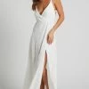 Amplify your evening looks with the Remington Dress! This lustrous satin-like maxi features a V-neckline, gathering at underbust seam, button detailing and a thigh high split. It’s an incredibly flattering dress thanks to its bodycon mermaid-style silhouette. Make it your choice for formal season and finish the look with strappy heels and a clutch to complete the look!