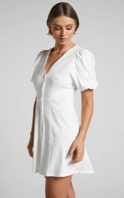Our Rochelle Dress is the perfect basic that can take you from day to night and casual to formal! This A-line mini features a V-neckline and elbow length sleeves, giving it a timeless silhouette that works for any occasion. Wear it out to dinner paired with heels and a clutch, or for a casual day look, team it with dad sneakers and a tote bag!
