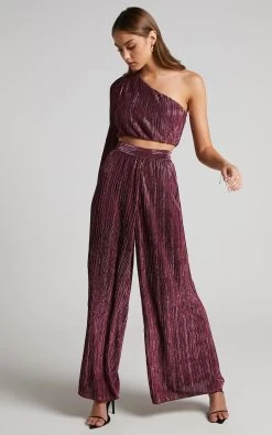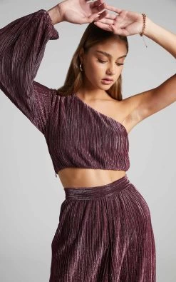 Match it with the Roellah Pants – Lurex Plisse Relaxed Palazzo Pants in Plum and add high stiletto heels for a show-stopping look!