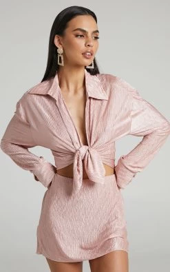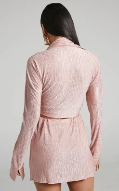 Go dressy with the Rosamund Relaxed Button Up Plisse Shirt in Dusty Pink and mules or go casual with a slightly baggy graphic tee and chunky sneakers!