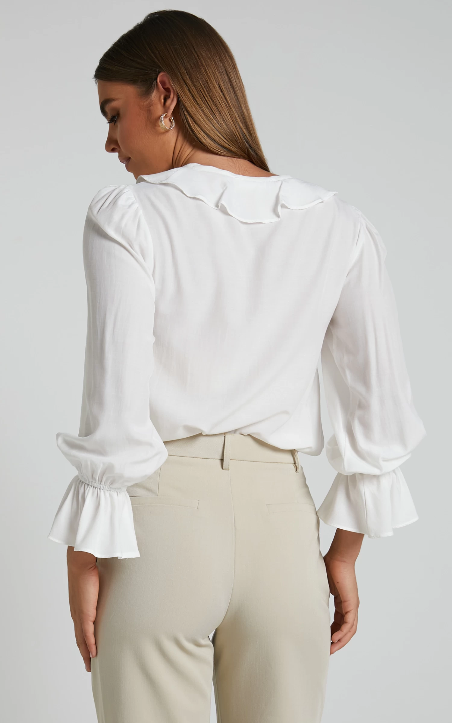 Be the first to review “Showpo Royalene Frill Detail Balloon Sleeve Shirt In Off White” Cancel reply