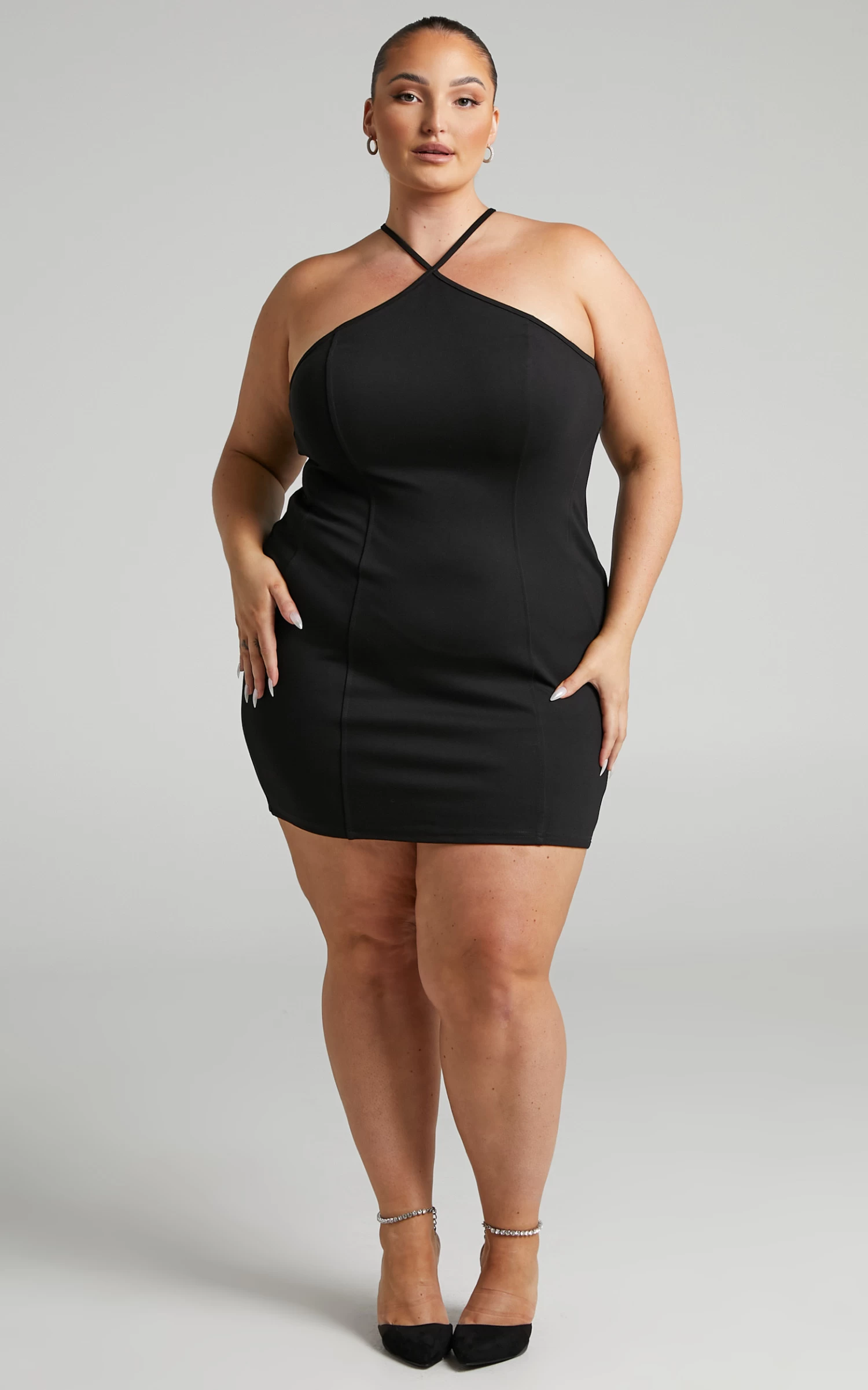 Party your way through the city in our Samina Dress! This sleek, chic and snatched mini will have you feeling yourself all day and night. Featuring a halter neck, panelled seams on the front and back, and a bodycon fit, this hot piece is so timeless and easy to wear across seasons and occasions.Â