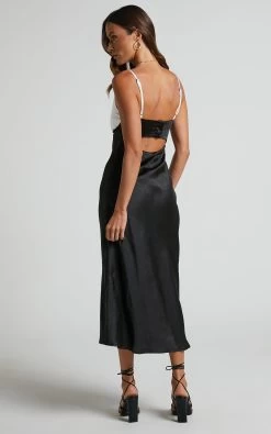 Showpo Sheintal Satin Slip Contrast Bust Midi Dress In Black