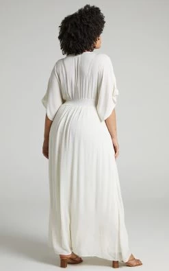 Our Sitting Pretty Dress is so dreamy! It’s your new go-to maxi for casual hangs and daytime events in the warmer months. Featuring a plunging neckline, buttons down the front and elastic shirring at the back, it’s such a comfortable and versatile piece. Slip it on for the beach with sandals and a shoulder bag or dress it up for the bar with glam heels and jewellery!