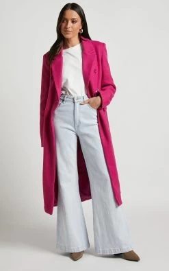 Make a bold statement in our Socorro Tailored Longline Coat, now available in a vibrant hot pink. This coat is perfect for both casual wear and workwear, adding the perfect touch of sophistication to any outfit. The longline silhouette with long sleeves make it ideal for cooler summer evenings or as an extra layer during weekend activities.