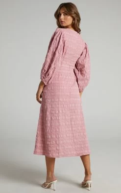 Fall in love with our totally dreamy Tabatha Midi Dress! This day-to-night number features a flattering A-line silhouette with puff sleeves, side cut outs and a flowing skirt with a cheeky thigh split. Made from a soft fabric with textured check shirring, it will keep you cool and comfortable in the warmer months.