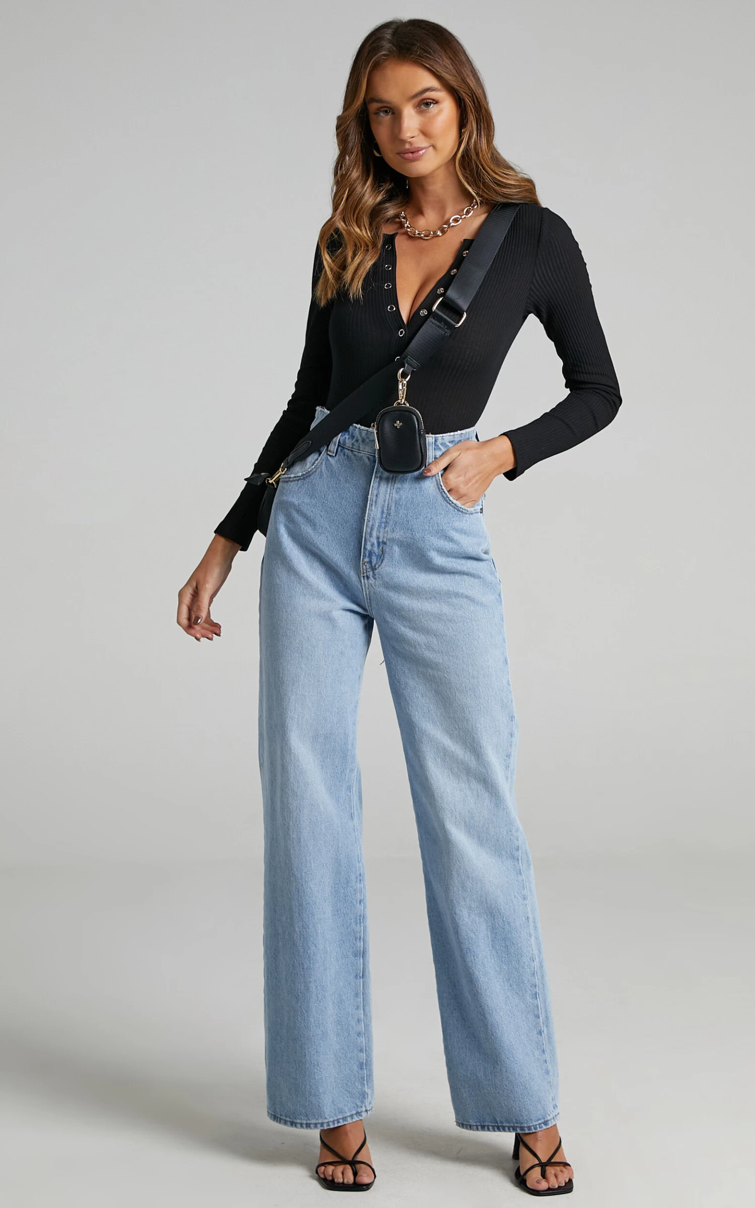 Say hi to our Tatem Bodysuit, a staple basic with a sexy twist! This ribbed bodysuit features a deep V-neckline, silver snap buttons on the front and fitted long sleeves. It’s the perfect staple for your wardrobe as it can be worn with the buttons done up or left open for a flirty vibe. Team it with denim jeans, heeled sandals and a mini handbag for an easy day to night look!