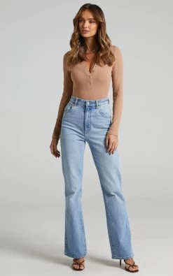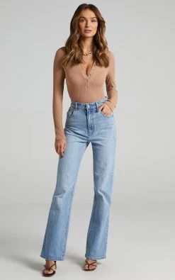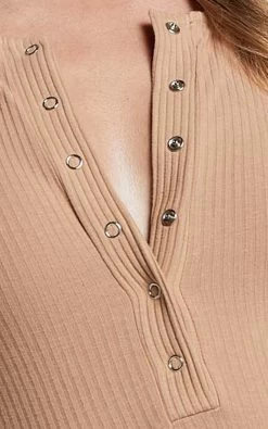 Showpo Tatem Longsleeve Button Front Bodysuit In Mocha