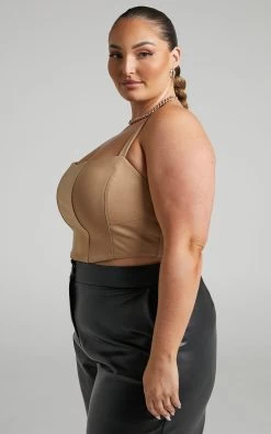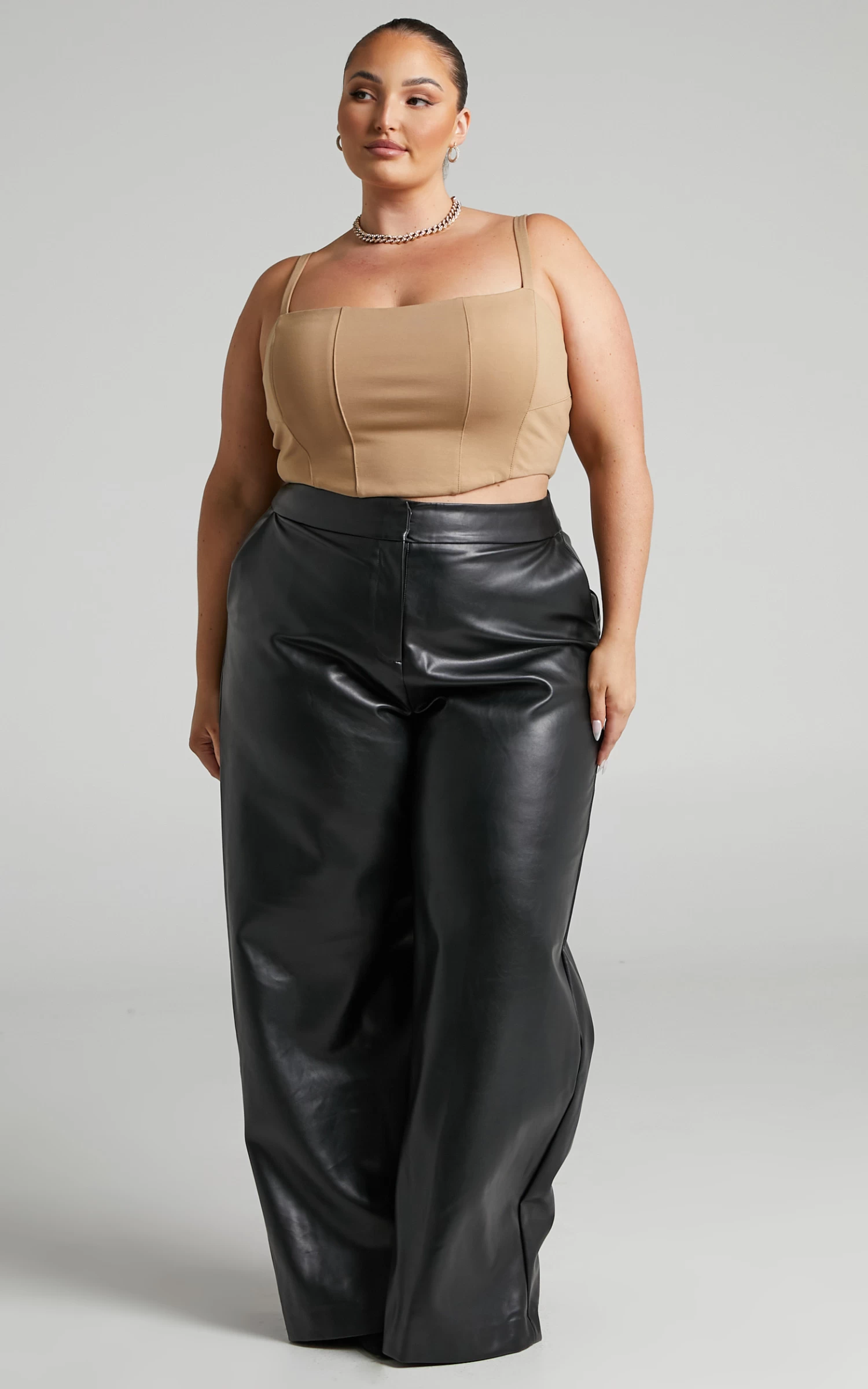Style it with the Minx Faux Leather Corset Top in Black and platform heels for the perfect drinks with the girls ‘fit!