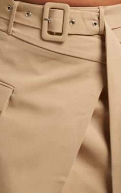 Structured tailoring takes form in an asymmetric silhouette in the Valeria Asymmetric Mini Skirt which is cut to a high rise waist defined with a belt buckle. Featuring topstitching and faux patch pocket, it’s designed to a subtle A-line silhouette that is offset by an off-centre crossover front panel to highlight a sharp asymmetric hemline.