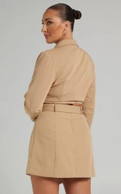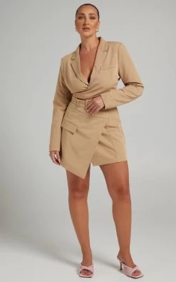 Continue the modern mood by pairing it with the matching Catie Crop Wrap Blazer in Camel and finish with heeled sandals!
