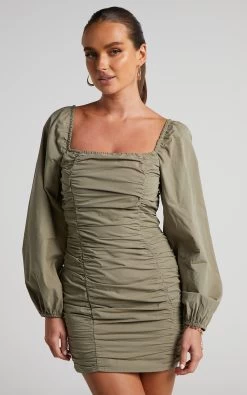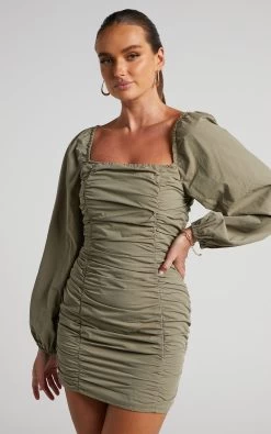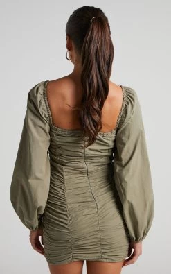 Our Verne Mini Dress is a stylish solution for those long lunches, balmy dinners and beyond. Featuring a square neckline, long balloon sleeves and ruching on the front and back, this flattering bodycon mini will take you from day to night without fail. Team it with heeled sandals, hoops and a mini shoulder back for a GNO!