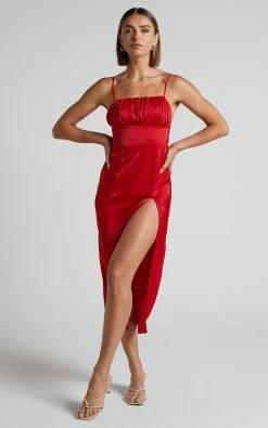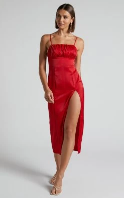 You + the Wallace Midi Dress = absolutely stunning! Turn heads in this party number with its body-skimming silhouette, ruched bust and thigh split.